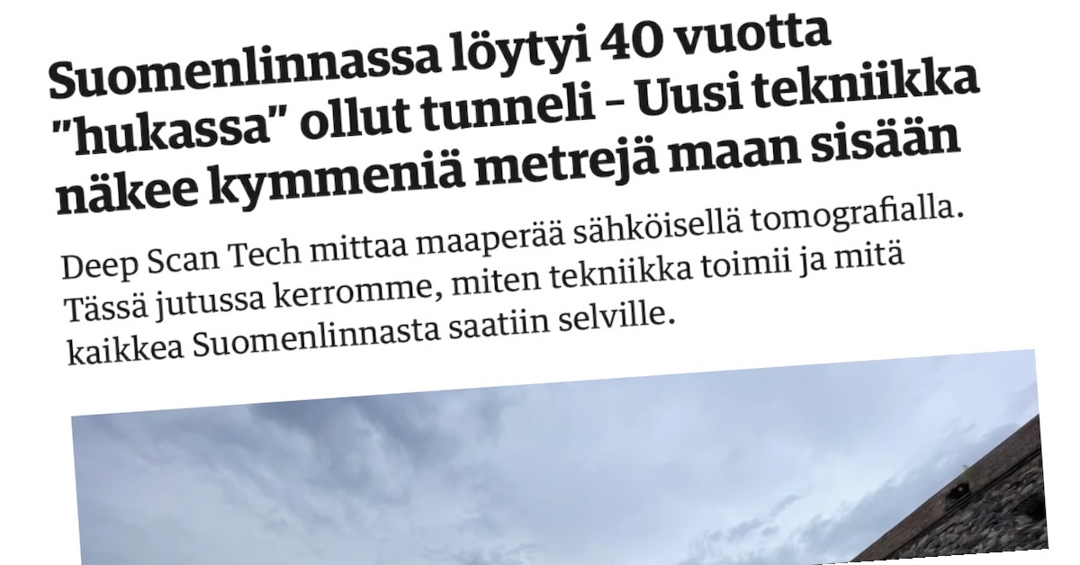 [1]: Kauppalehti: "Suomenlinnassa löytyi 40 vuotta 'hukassa' ollut tunneli – Uusi tekniikka näkee kymmeniä metrejä maan sisään"